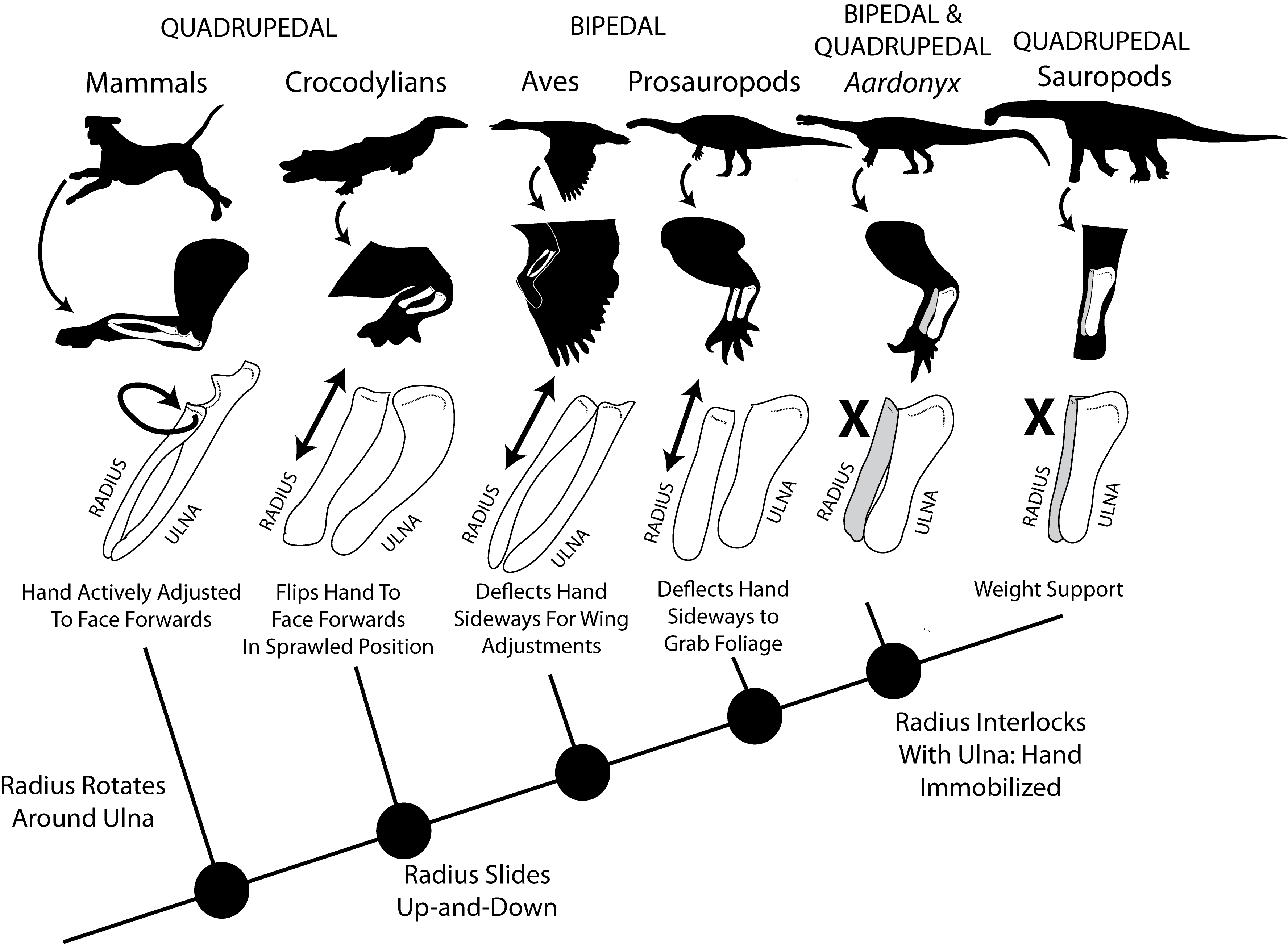 Footprints go into multiple layers on sediment, which can be formed in situ, vivo and records the motion, soft tissue anatomy and the environment itself. Substrate and anatomy will give tracks, adding dynamic into the equation will give the locomotion of the animal. Through evolution from dinosaurs to modern day birds, the femur gets shorter in length and also moves from behind the hip to in front of the hip.