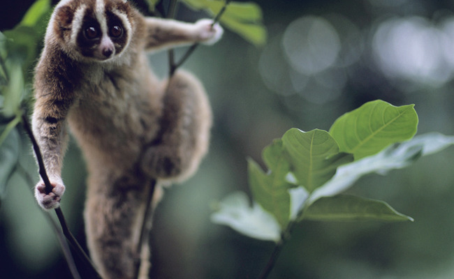 Slow Loris are a group of several species of nocturnal strepirrhine primates that make up the genus Nycticbus and are found in Southeast Asia. Slow Lorises have a toxic bites, the secretion of the toxin is activated by mixing with saliva. The bite is a deterrent to predators, and the toxin is also applied to the fur during grooming as a form of protection for the infants.